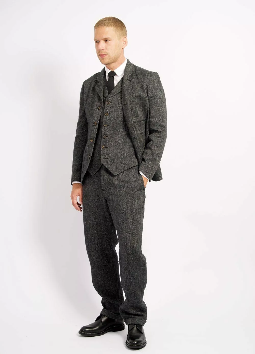 The yarn dyed fabric is an Italian herringbone that has a distinctive tweed look. It’s a blend of 52% wool, 29% linen and 19% polyester. While it has a wintery look, the linen makes the fabric light in weight. And that makes it extraordinarily comfortable to wear.