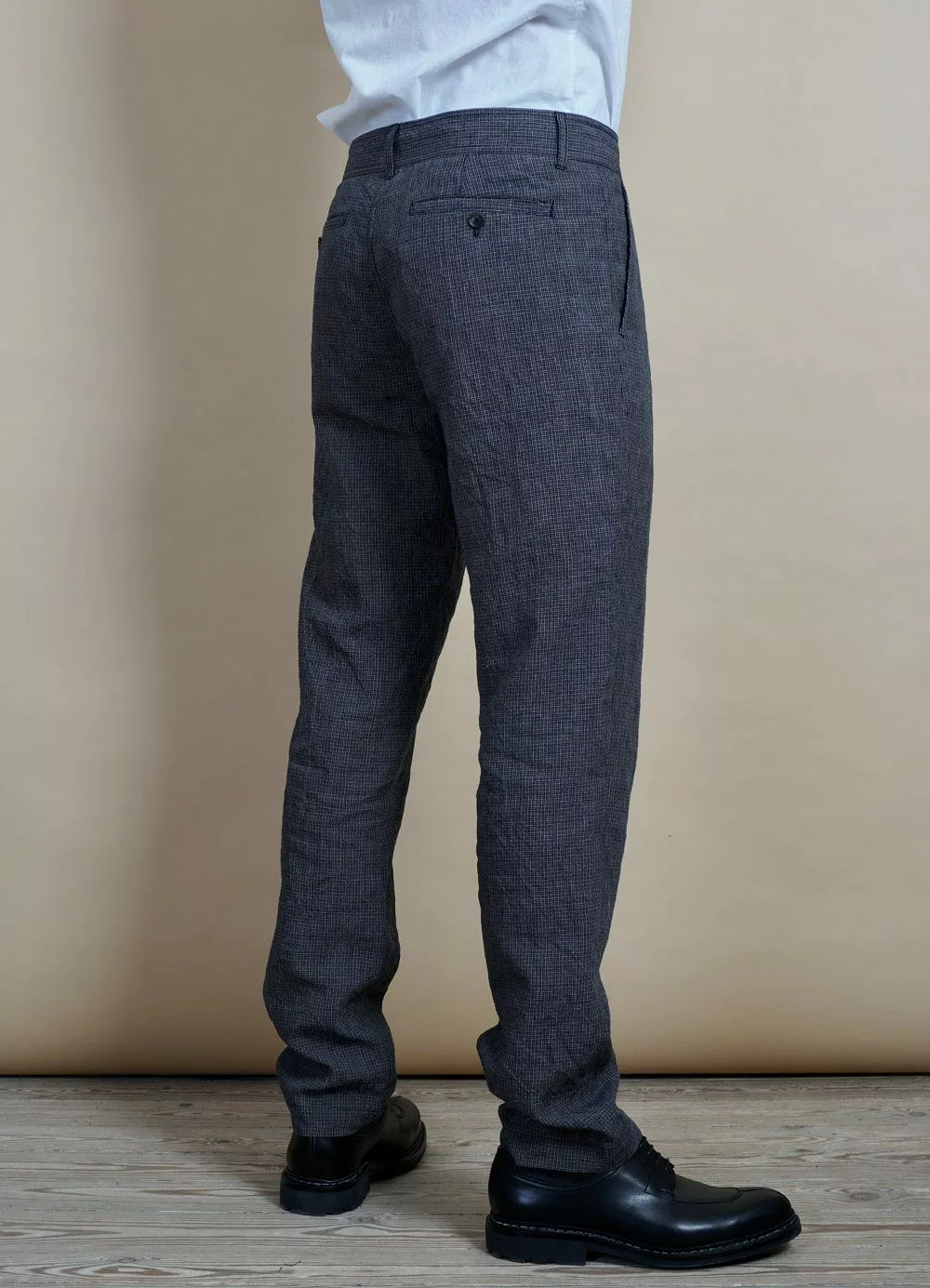 FRED is a pair of contemporary everyday trousers with slanted front pockets and welted back pockets. The fit is regular with a little taper on the leg.