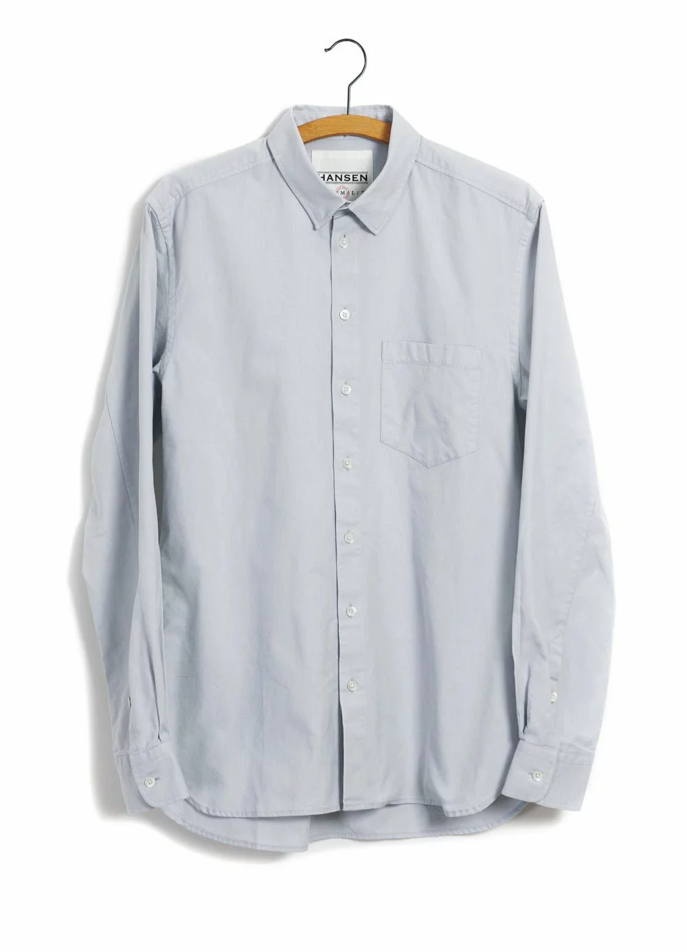 HAAKON is a classic slightly formal shirt with a hidden button-down collar, a chest pocket and a French placket. It is the ideal ‘wear with a tie’ shirt. The fit is towards slim but still relaxed. It is sewn with French seams all over and has natural Mother of Pearl buttons.