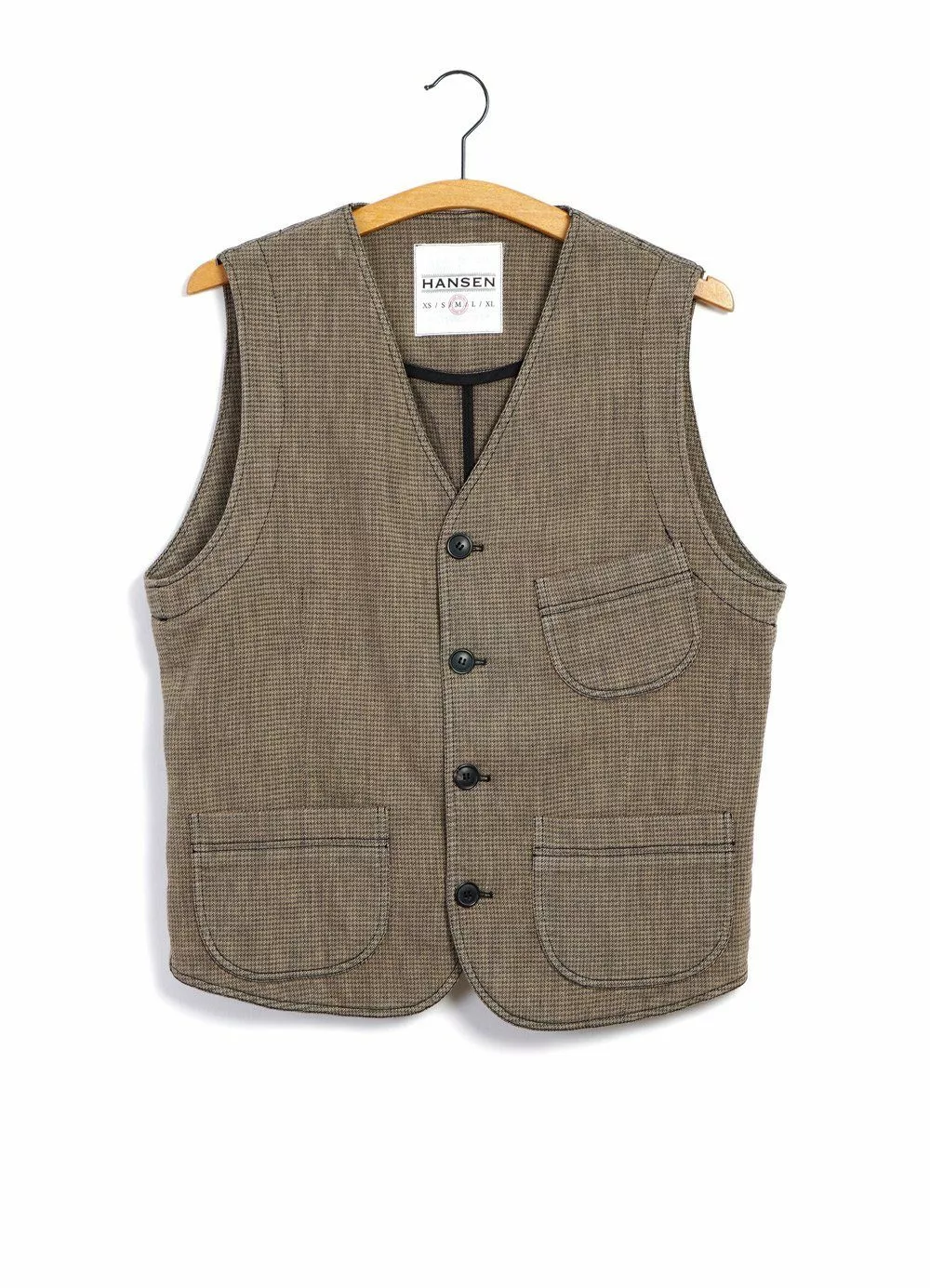 HARALD is a newcomer for the SS21 season. It is a 4-button waistcoat with a regular neck drop, button size-regulators on the back and three rounded patched-on pockets at the front, providing a more casual flair.