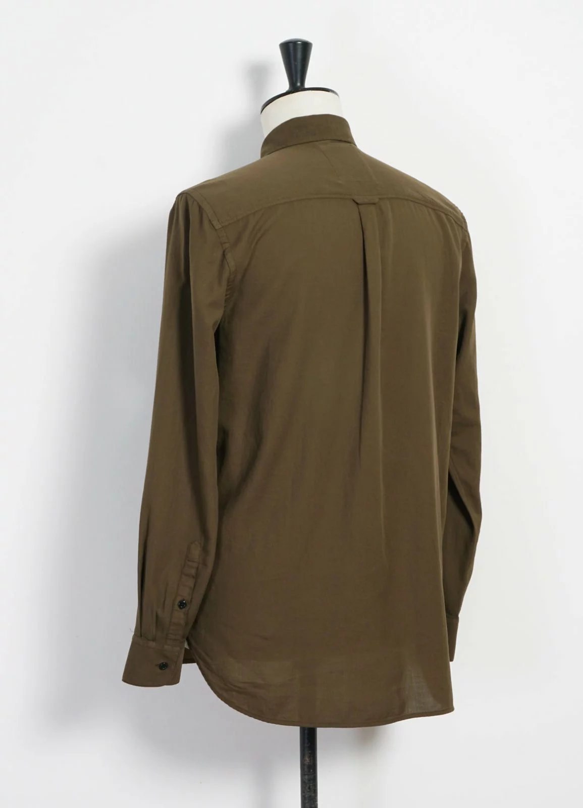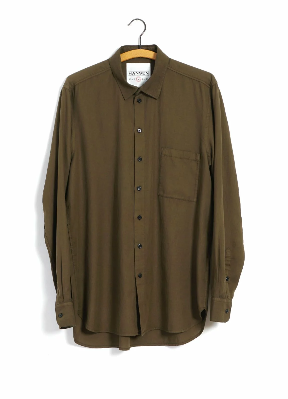 HENNING is the Hansen everyday shirt. We believe this fabric is addictive and the reason it is part of every collection. The design is straight-forward without any surprises. The fit is relaxed, and you can wear the shirt tucked or un-tucked. It is sewn with felled seams and comeswith natural Mother of Pearl buttons.