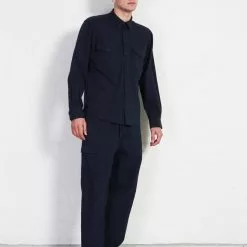 coloured blue décor stitching on the chest pocket, a taped neck and slits at