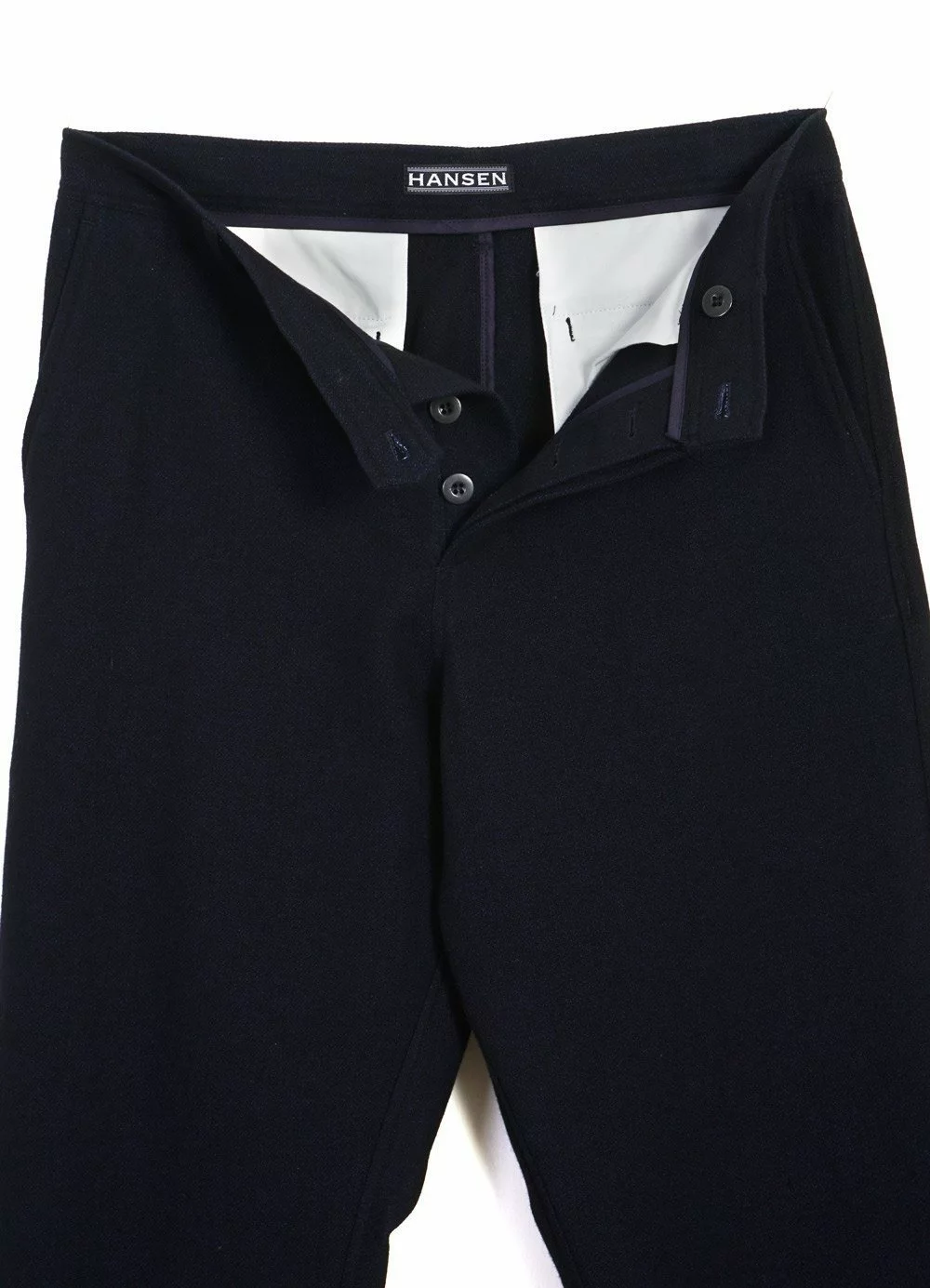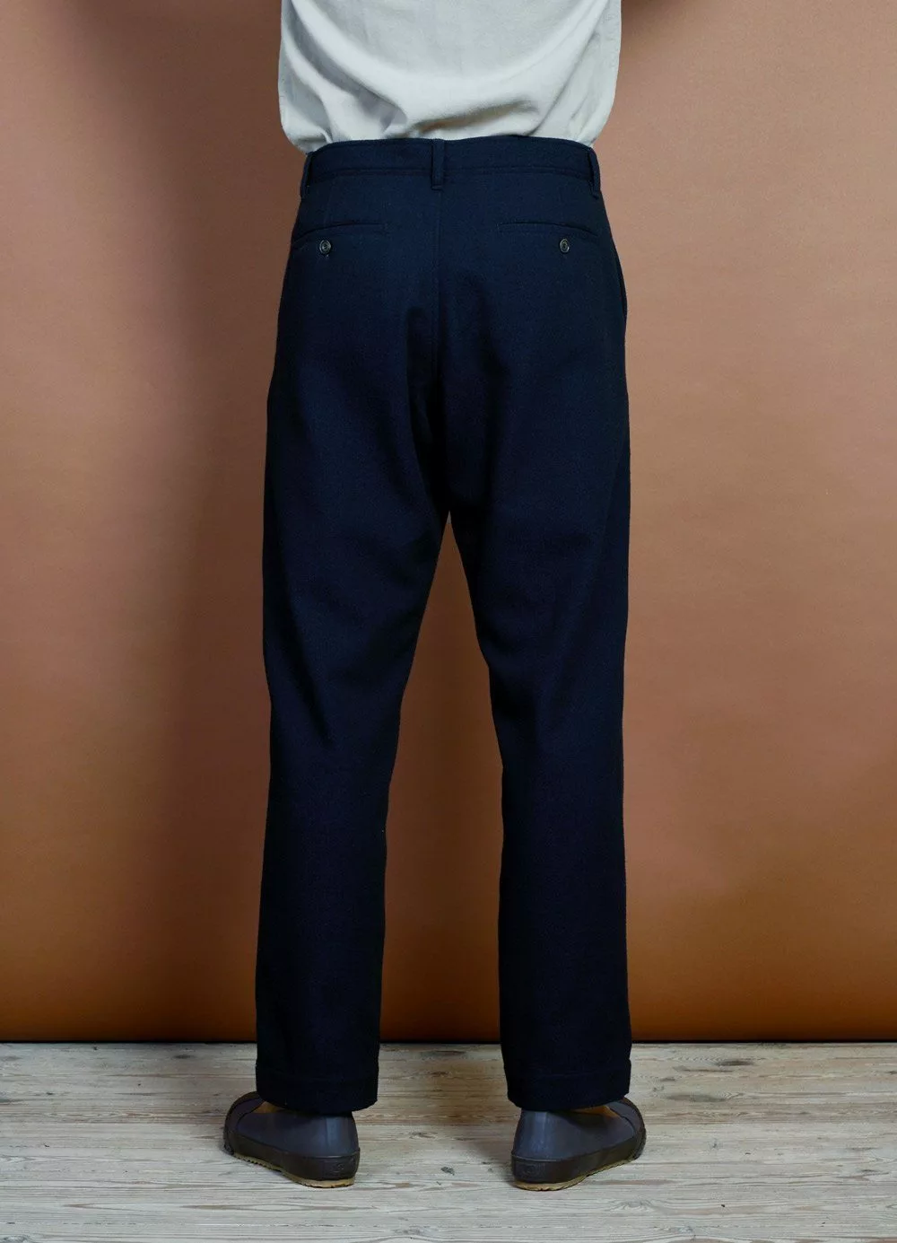 KEN is a wide cut trouser with a fitted top block and a relaxed silhouette. It has two welted back pockets, slanted front pockets and top-stitching throughout. It can be worn separately or as part of our well-known casual looking three-piece suits.