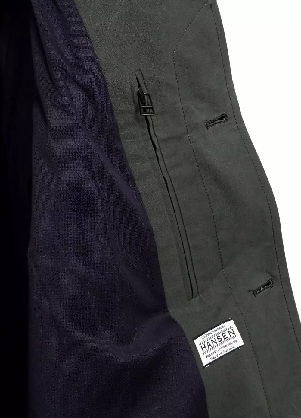 This high density cotton canvas comes from one of the best outerwear suppliers of Scotland. It is water repellant with it’s waxed finish and will protect you from wind and rain. The twill lining comes from Italy, and is of 100% cotton.