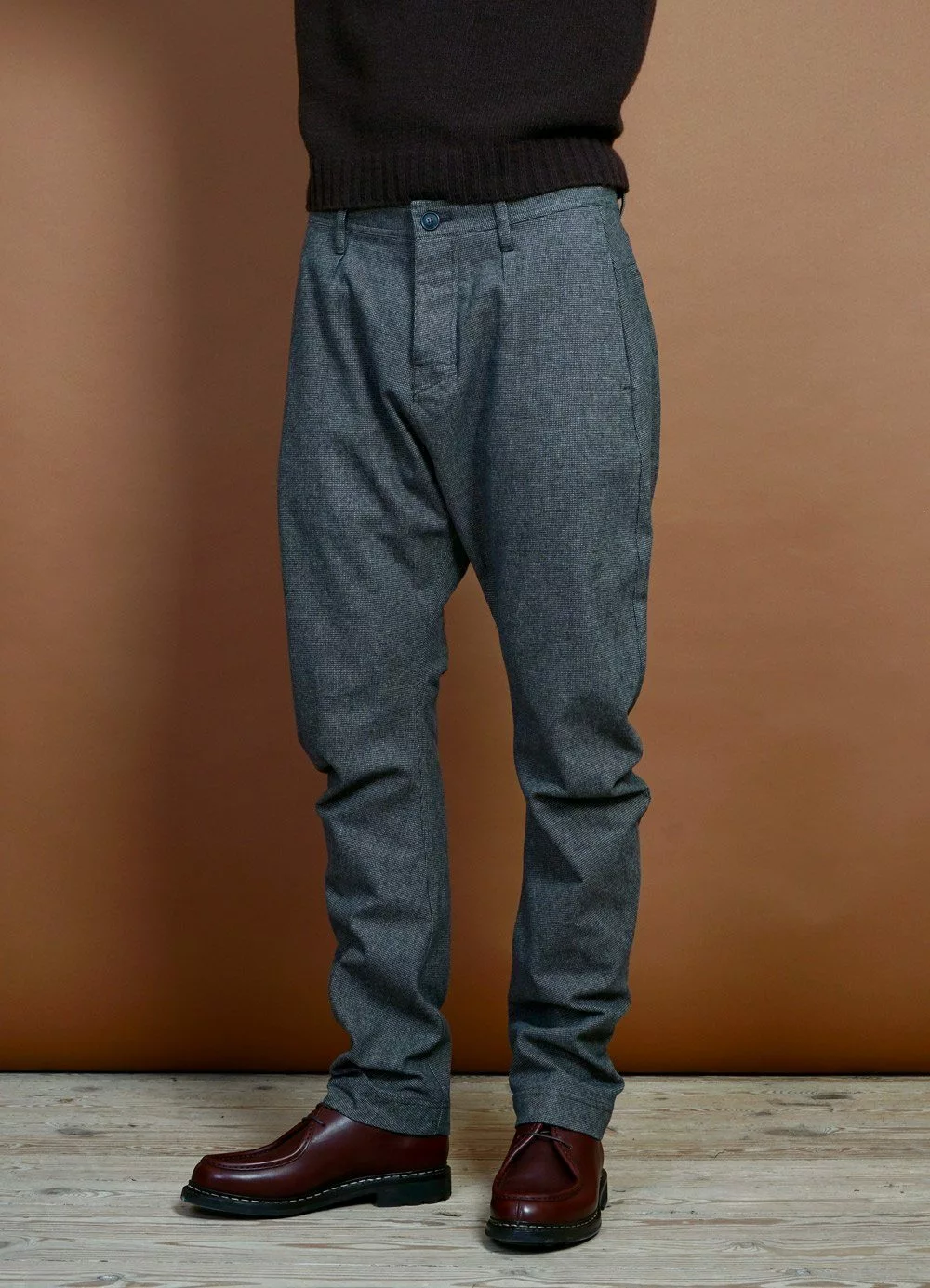 Otto is something out of the ordinary that has become a HANSEN signature item. It has a back yoke, a very high rise, and a split in the waistband and paspel back pockets. Yet it is the shape of the legs that is something else. We call Otto driving trousers because it has roomy thighs, quite a bit of taper on the legs, and a characteristically circular shape when lying flat.