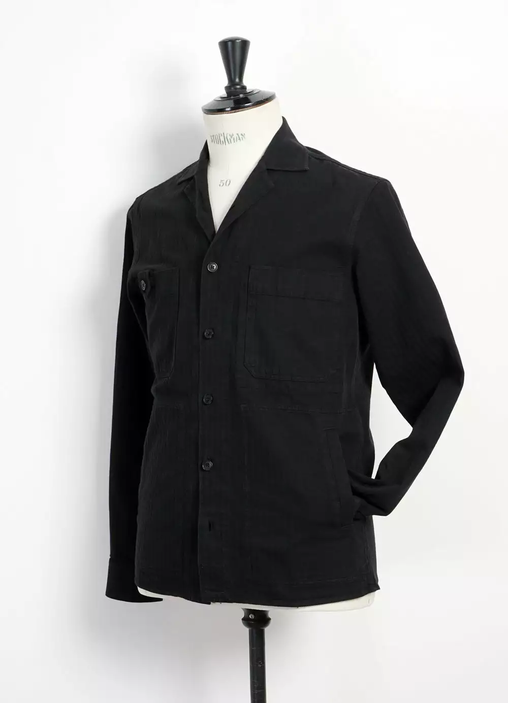 An Italian sturdy cotton Herringbone weave. For a softer and casual feel the garments have been over-dyed, washed and tumbled.