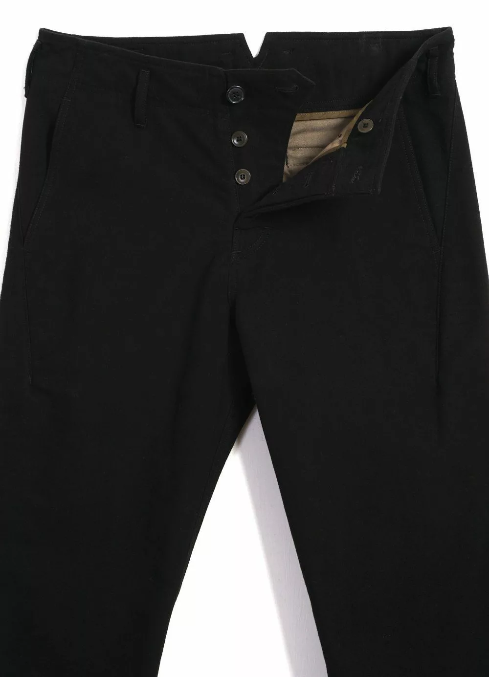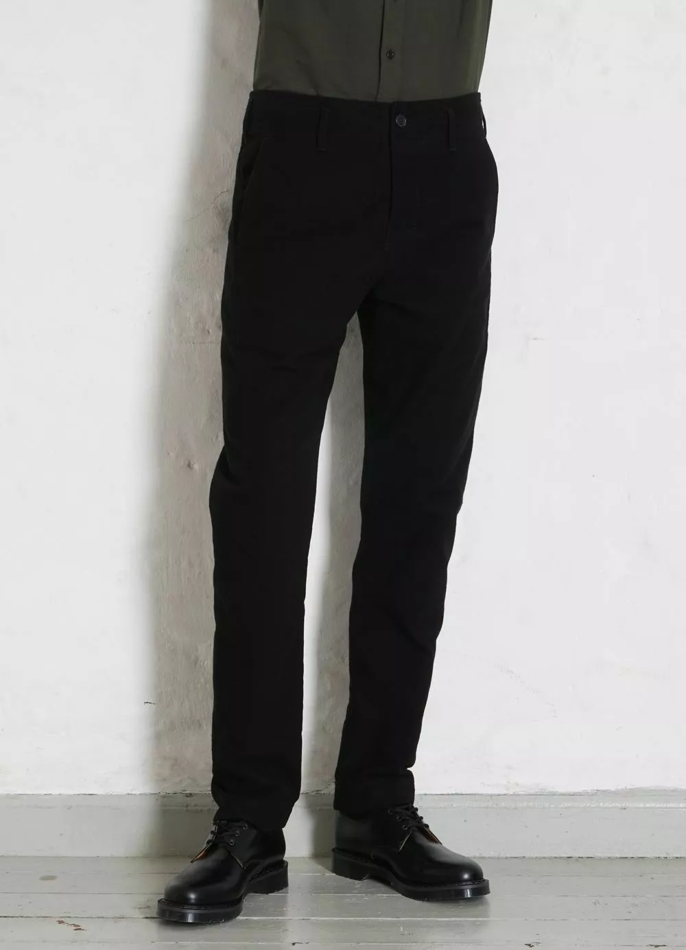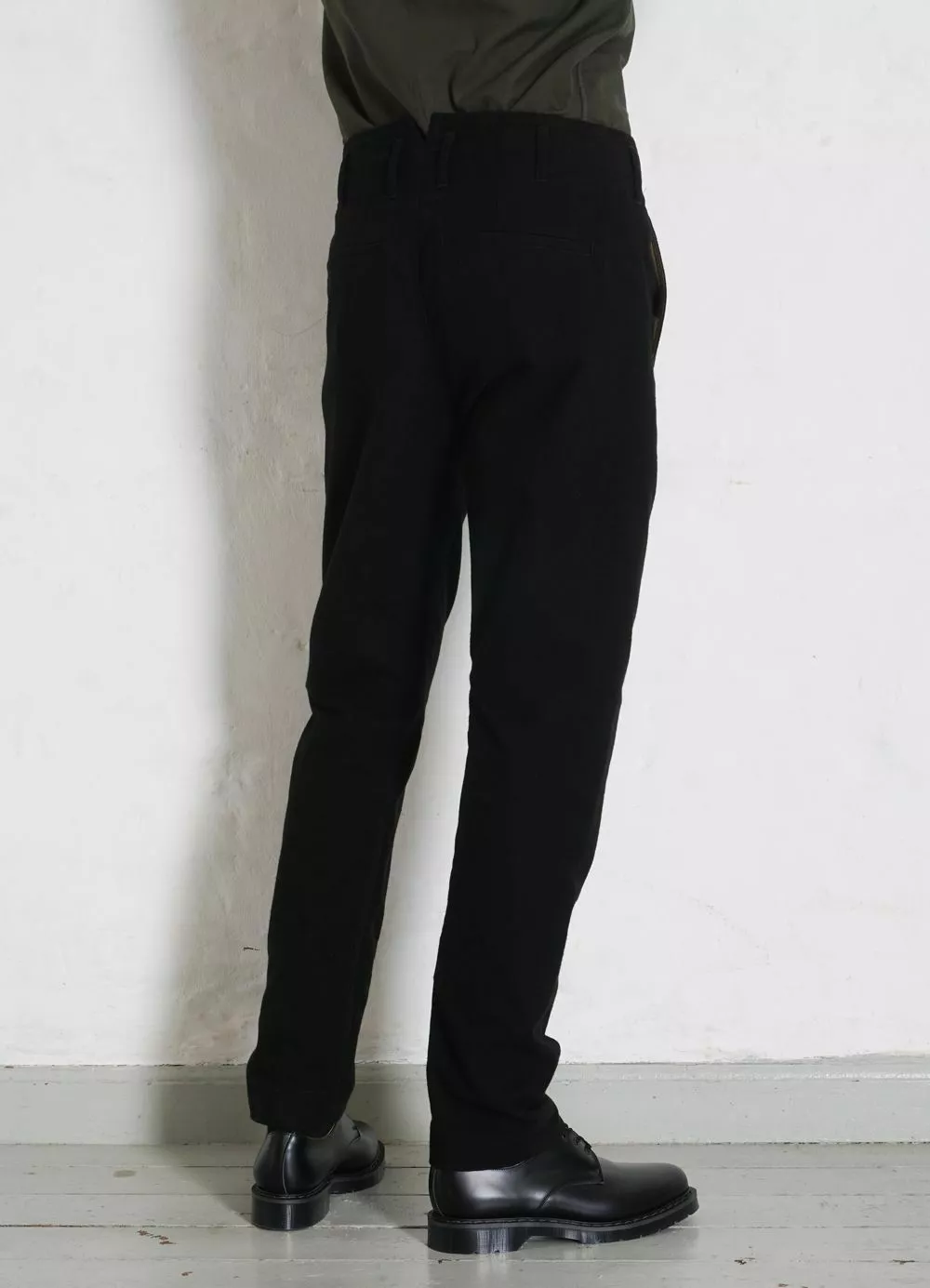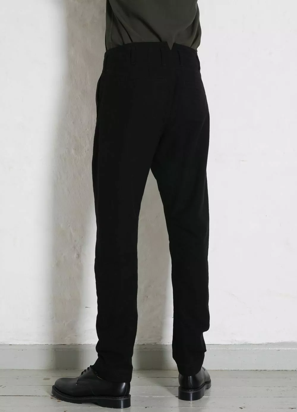 SVENNING is a HANSEN signature item that is characterized by not having side seams and a unique front pocket construction. It has a slim silhouette and the construction makes it fit many body types exceptionally well. The back rise is high and it is cut without a waistband.