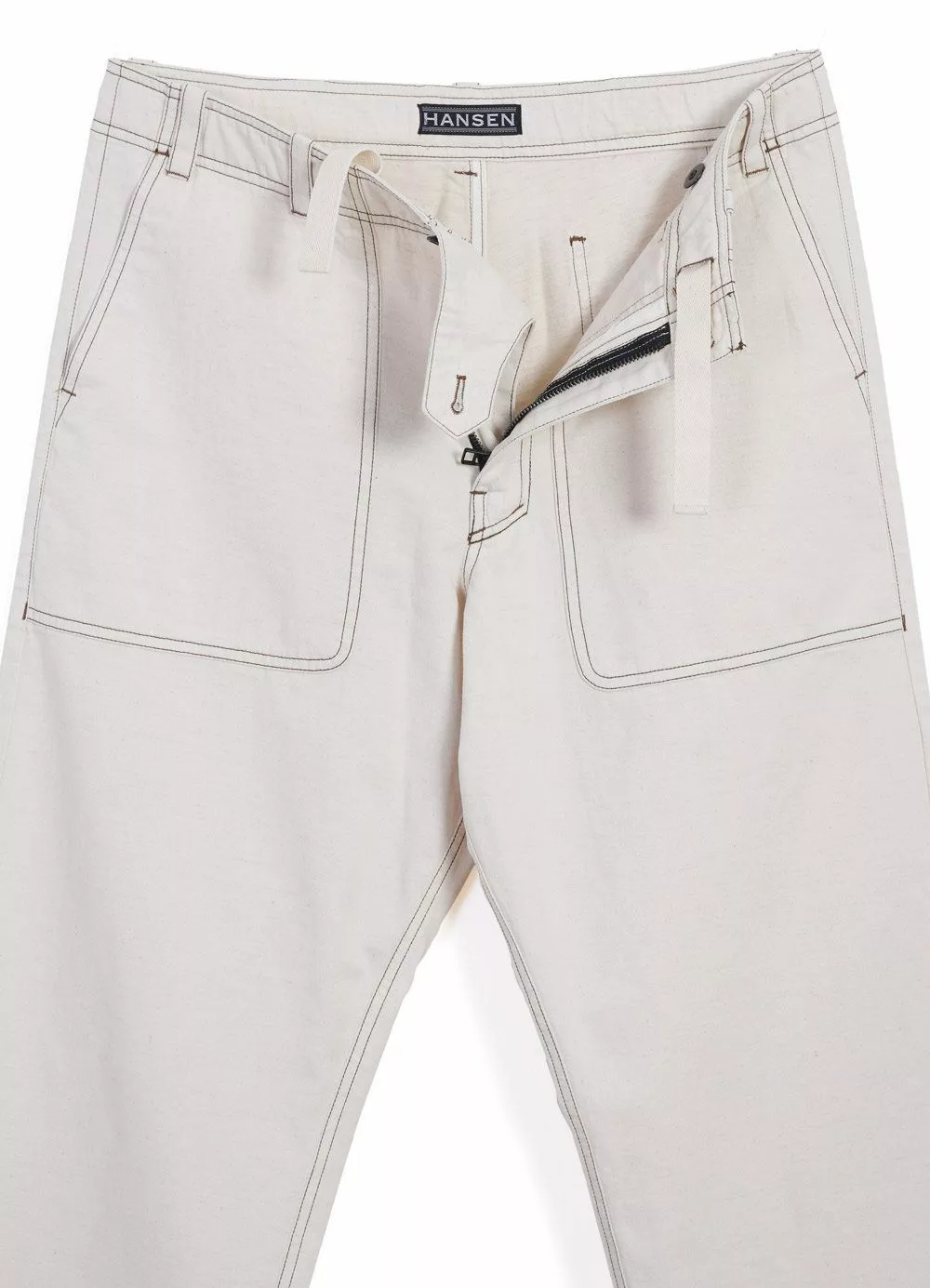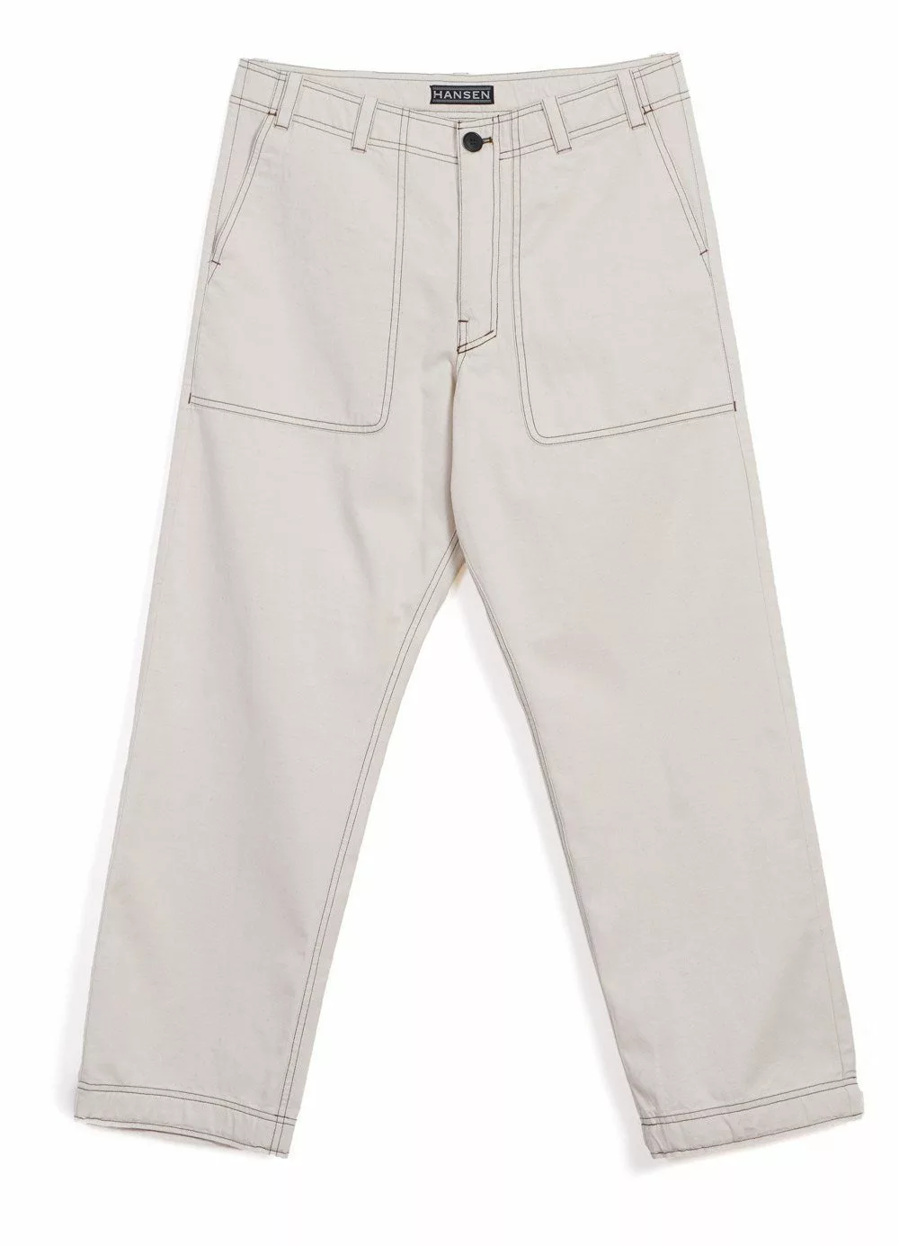 VILLE is a newcomer for the SS21 season. It is a wide cut trouser with slanted patched-on front pockets and contrast top stitching, giving it a slight work wear sentiment. Other details include two patched-on back pockets and a zipper fly.