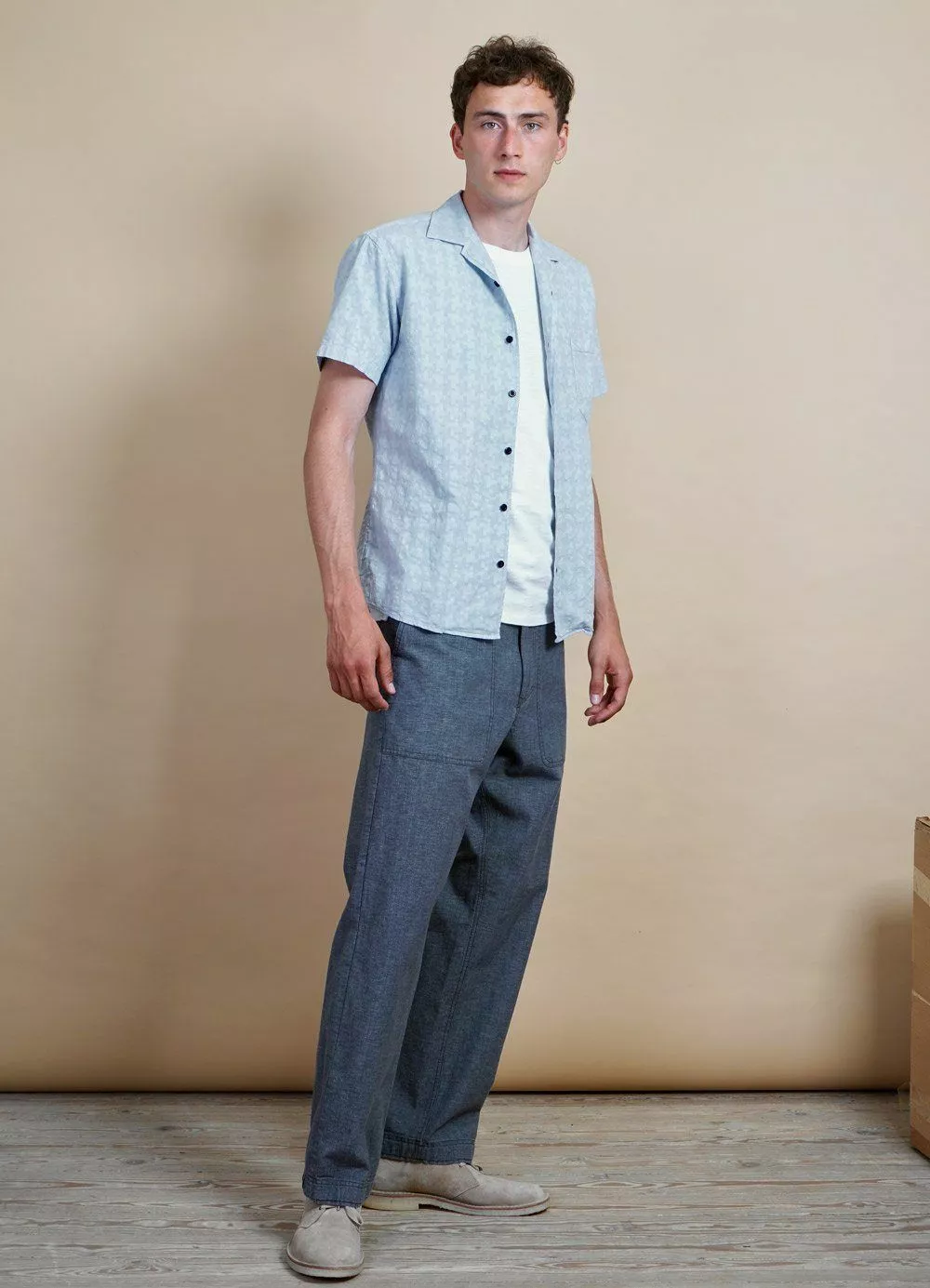VILLE is a newcomer for the SS21 season. It is a wide cut trouser with slanted patched-on front pockets and contrast top stitching, giving it a slight work wear sentiment. Other details include two patched-on back pockets and a zipper fly.